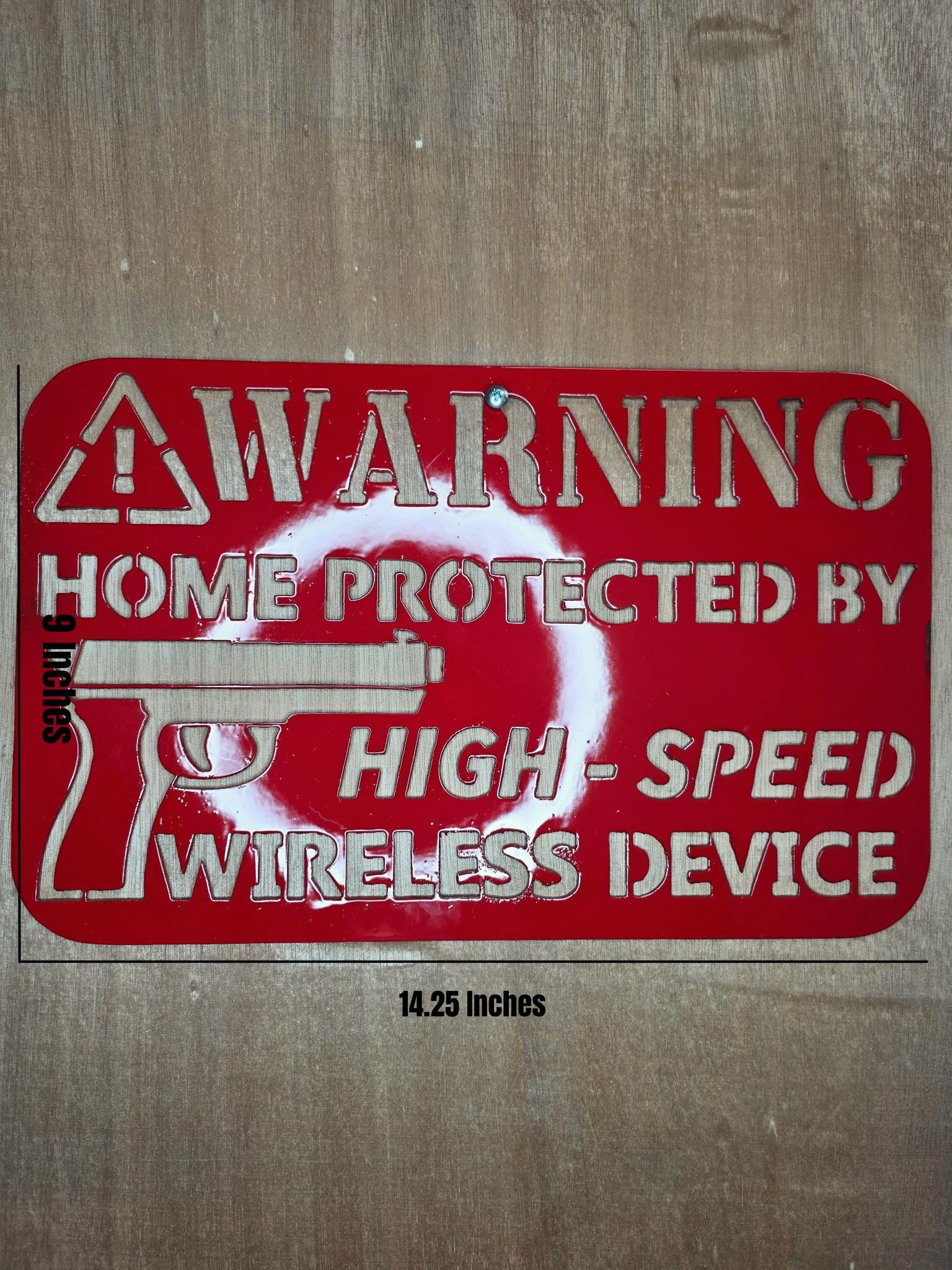 Warning Metal Sign – Home Protected by High-Speed Wireless Device, CNC Steel Wall Art